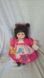 This charming doll features a vibrant pink dress adorned with colorful floral designs. For serious collectors.