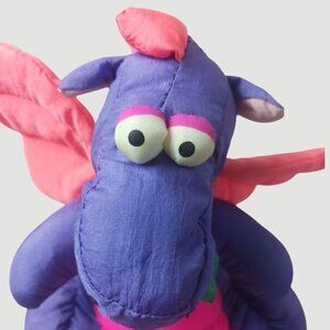 Playful pals Vtg Dragon Rare 80's Plush Toy With Wings purple & pink