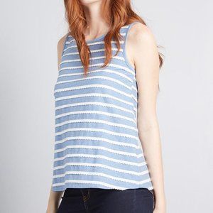 This ice blue tank top is a full-fledged member of your wardrobe in that its white, scalloped stripes make frequent outfit appearances! Part of ModCloth's namesake label, this cotton-blend top's easy fit and upbeat vibes have a way of enhancing endless ensembles.