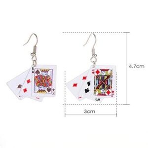 Playing Cards • Poker • Blackjack • Las Vegas • Getaway • Casino • Gambling • Costume Jewelry • Dangle • Drop • Novelty • Whimsical • Spades • Hearts • Diamonds • Clubs • Stocking Stuffer • Holiday Gift