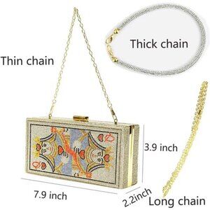 - Includes a detachable long chain strap for versatility; can be used as a shoulder bag, crossbody bag, or clutch.