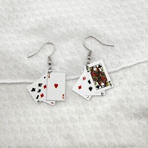 Playing Cards Dangle Earrings, Novelty Classic Card Game Earrings, Quirky Poker