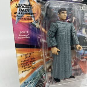 This Playmates Lieutenant Commander Data action figure is a must-have for any Star Trek: The Next Generation fan. The highly-detailed collectible features Data in his Romulan uniform and is perfect for display or play. With its intricate design and attention to detail, this figure is sure to impress even the most discerning collector.
