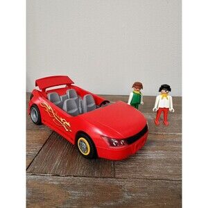 This is a vintage Playmobil toy car from 2007. The set includes two male figures and features an open trunk. The car is 8.5 inches long and is part of the Playmobil character family. It is designed for children aged 4-7. Please ask all questions as all sales are final.