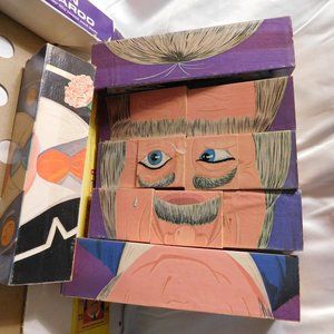 Vintage 1969 Playskool Captain Kangaroo Wood Face Changing Block Puzzle