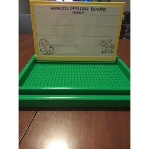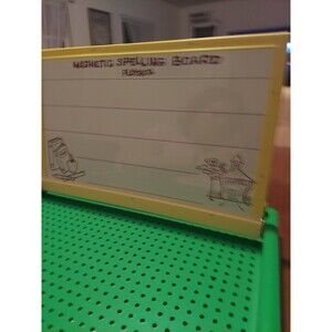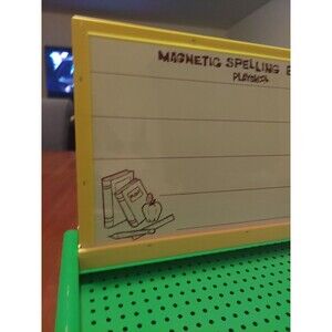 This vintage Playskool chalk board is a must-have for any homeschooling family or preschool classroom. The magnetic dry erase board makes it easy to create and erase letters and numbers, and the compact size makes it easy to store and transport. It's perfect for teachers and parents who want to make learning fun and engaging. (Does not come with magnets)