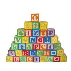 Playskool Classic Assorted Wooden Letter number Image Building Blocks 39