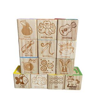 Playskool Classic Assorted Wooden Letter number Image Building Blocks