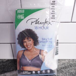 Playtex Full Figure 18 Hour Sleek & Smooth Wireless Bra White Size 42D 4803