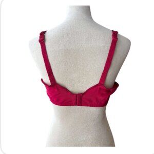 This gorgeous Playtex bra features a vibrant red color with delicate lace detailing across the cups. Designed for everyday comfort and support, it includes: