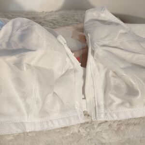 This New white Playtex wirefree Just My Size. easy on front close bra is a size 44C. It has cushioned straps. All offers are welcome.