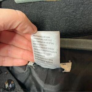 Beautiful black blazer with a brocade pattern. Very lightweight. Lined on the inside. Cute peplum detailing along the bottom. Size 14 petite wide. Has a few spots on the back and simply needs a trip to the dry cleaner. Would look great at a semi-formal or formal event.