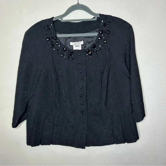 Plaza South Black Peplum Brocade Blazer Size 14 wide petite