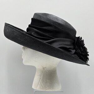 Plaza Suite Black Hat with Hat Band & Flower Accent
