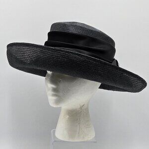 • interior black satin crown band with elastic tie