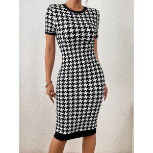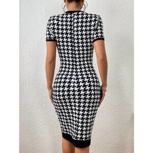 Plazacore Houndstooth Print Contrast Binding Bodycon midi Dress