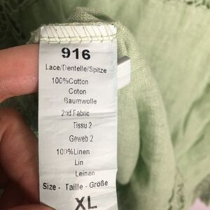Mint green long sleeve shirt for women with lacy sleeves. Lace runs all around the neck and down the sleeves. Lace is all around the bottom of the shirt.