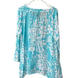 Pleasant Shade size XL semi sheer shark bite 3/4 roll up sleeves top. Beach tro