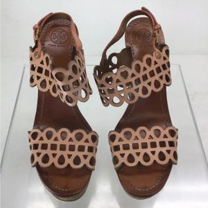 Please Help-Tory Burch Wedge Heels Leather Gold Tone 🪦We just lost my Fiancé 2 😍