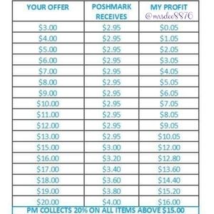 Poshmark charges sellers $2.95 on all orders of $15.00 or less and 20% on all orders above $15.00.