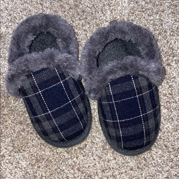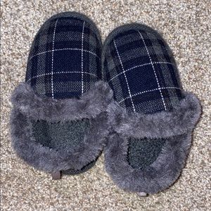 Details: Plaid with fur detail. House Shoes