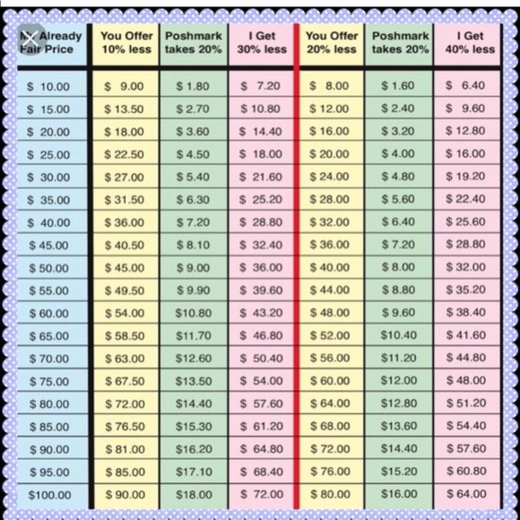 Please use the chart when making offers! I love offers and I will accept all reasonable offers! If your offer is too low I will counter or decline.