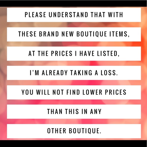 My prices are LOW and fair for the items I’ve listed. I’ve reduced and reduced and reduced again - on most items, I cannot go much lower because remember, Poshmark also deducts their fee as well. Please be considerate of that if submitted an offer. Thanks y’all! Hope you understand!
