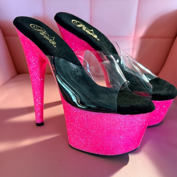 Pleaser 7" Adore #701- Hot Pink Glitter UV Slides- Size 9