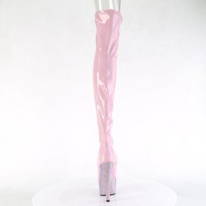 Pleaser BEJ3011-7/BPHG/BPRS Pink Hologram Patent 7" (178mm) Heel, 2 3/4" (70mm) Platform Peep Toe Stretch Thigh Boot Featuring Rhinestones Encrusted All-Over the Entire Platform Bottom, Full Length Inner Side Zip Closure