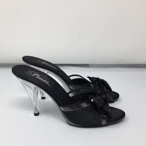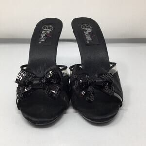 Pleaser Black Caress 401-7 Sequin Bow Heel Slides Size 8
