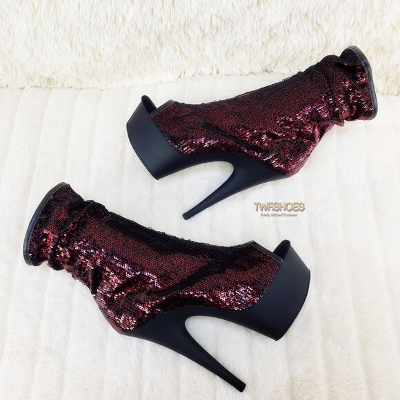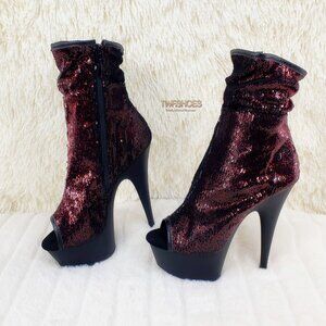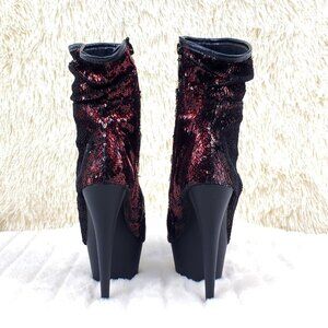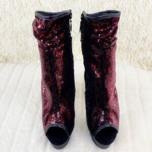 Pleaser Burgundy Sequin Slouch Shaft High Heel Platform Ankle Boots Delight 1008