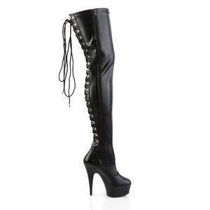 Pleaser Delight-3063 Black Faux Leather 6" (152mm) Heel, 1 3/4" (45mm) Platform D-Ring Lace-Up Back Stretch Thigh High Boot, Full-Length Inner Side Zip Closure, DEL3063/B/PU Brand New in Box Multiple Sizes Available Perfect for dancewear, dancers, goth boots, dolls kill shoes, sexy footwear, with punk clothing and more #nwt #exotic #dance #y2k #grunge #gothic #alternative #fashion #festival #rave #cosplay #costume