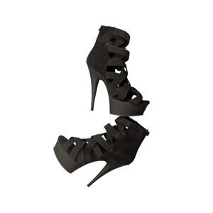 6" High Heel, 1 3/4" Platform Criss Cross Lattice Ankle Boots. Elastic Straps and Back Zipper Closure.