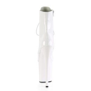 Pleaser Flamingo-1020 White Patent 8" (20.3cm) Stiletto Heel, 4" (10.2cm) Platform Lace-Up Front Ankle Boot, Inside Zip Closure, Cosplay Pinup Exotic Pole Dance High Heels, FLAM1020/W/M