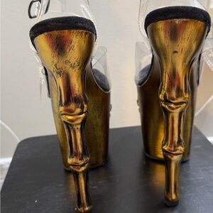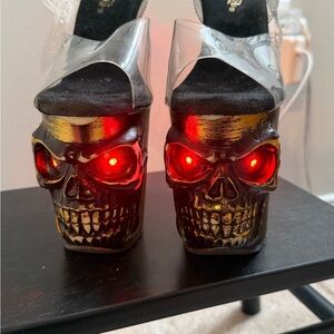 8in heel size Us 7 has 3 light settings and comes with charging cord. Still in good condition finish could be touched up with nail polish or sharpie marker.