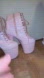 Stand tall with these stunning light pink platform heels. Features lace-up design and sleek finish.