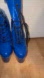 Bold blue boots with a glossy finish. Features a high platform and lace-up design. Perfect for a standout look.