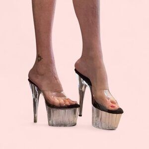 Pleaser’s Clear Platform Dancer Drag Club High Heels Shoes in women’s size 8 feature an open toe design with a slip-on closure,. These ultra-high platform heels are perfect for club occasions, with a 3-inch platform and 7-inch stiletto heel style adding a touch of glam and style.