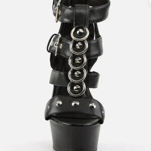 The Pleaser Delight 658 heels are a stylish choice for women looking for a statement shoe. With a 6-inch heel and a 1 3/4-inch platform, these matte black heels offer both height and comfort. The open toe design and platform style provide a trendy and unique look, perfect for adding a touch of glam to any outfit. Made of faux leather with a US size 8, these ultra-high heels are sure to make a statement and turn heads wherever you go. NEVER WORN, Stripper Heels.