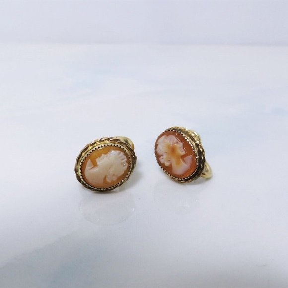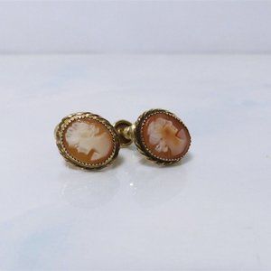 Pleasing Vintage 12K Gold Filled Carved Shell Cameo Screw-Back Earrings By BOJAR
