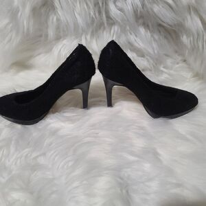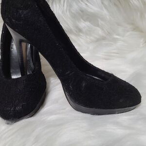 Pleasures all over Black lace 4" heel. Lots of life left. Size 6 NO Box