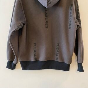Pleasures Now Gray Black Spellout Pullover Hoodie Sweatshirt Size Small