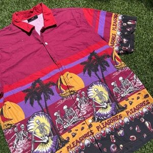 Cool Pleasures Skeleton Beach Button Up Shirt, nice graphics and color with minimal to no wear .