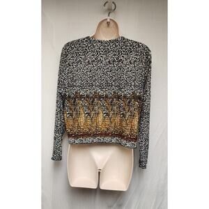 Pleat Pleat By Rafael Leopard Print 3/4 Sleeve Front Tie Crop Blouse Size Large Multicolor Brown.
