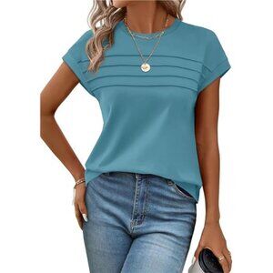 Elevate your everyday style with this chic and comfortable cap sleeve top. The soft, lightweight fabric and flattering pleated front create a effortlessly trendy look. Perfect for pairing with your favorite jeans, skirts, or shorts for a versatile outfit suitable for daily wear, casual outings, or the office.