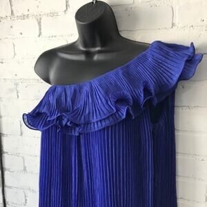 Pleated Chelsea & Violet One Shoulder Blue Dress Small Holiday Party Dress NEW