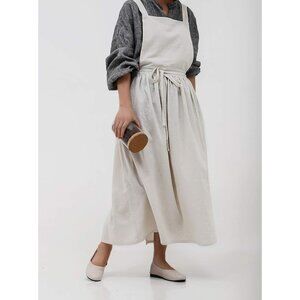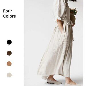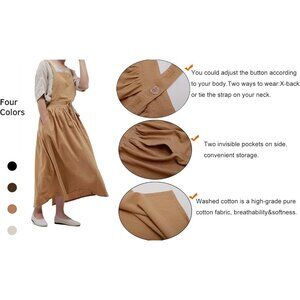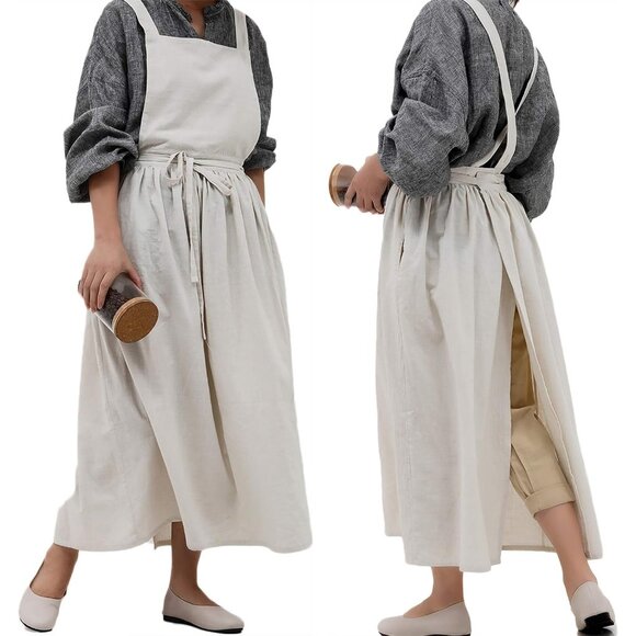 Pleated Cotton Long Apron X Back Kitchen Garden Florist Work Clothes Bib Dress