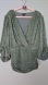 Pleated Draped V-Neck Puff Sleeve Faux Wrap Top, Cactus Green, Size Womens XS