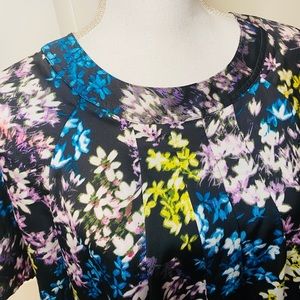 Beautiful details in this sweet floral blouse. Can easily be dressed up or down.