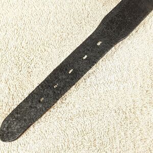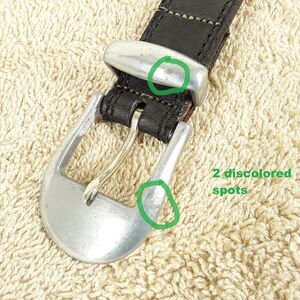 CONDITION: Visible signs of wear, very sturdy, stitching is secure; Outer surface has a few shallow scratches and dents; Buckle has 2 discolored spots; Name and markings on inner side are nearly worn off. Black polish or leather treatment may fix the blemishes.